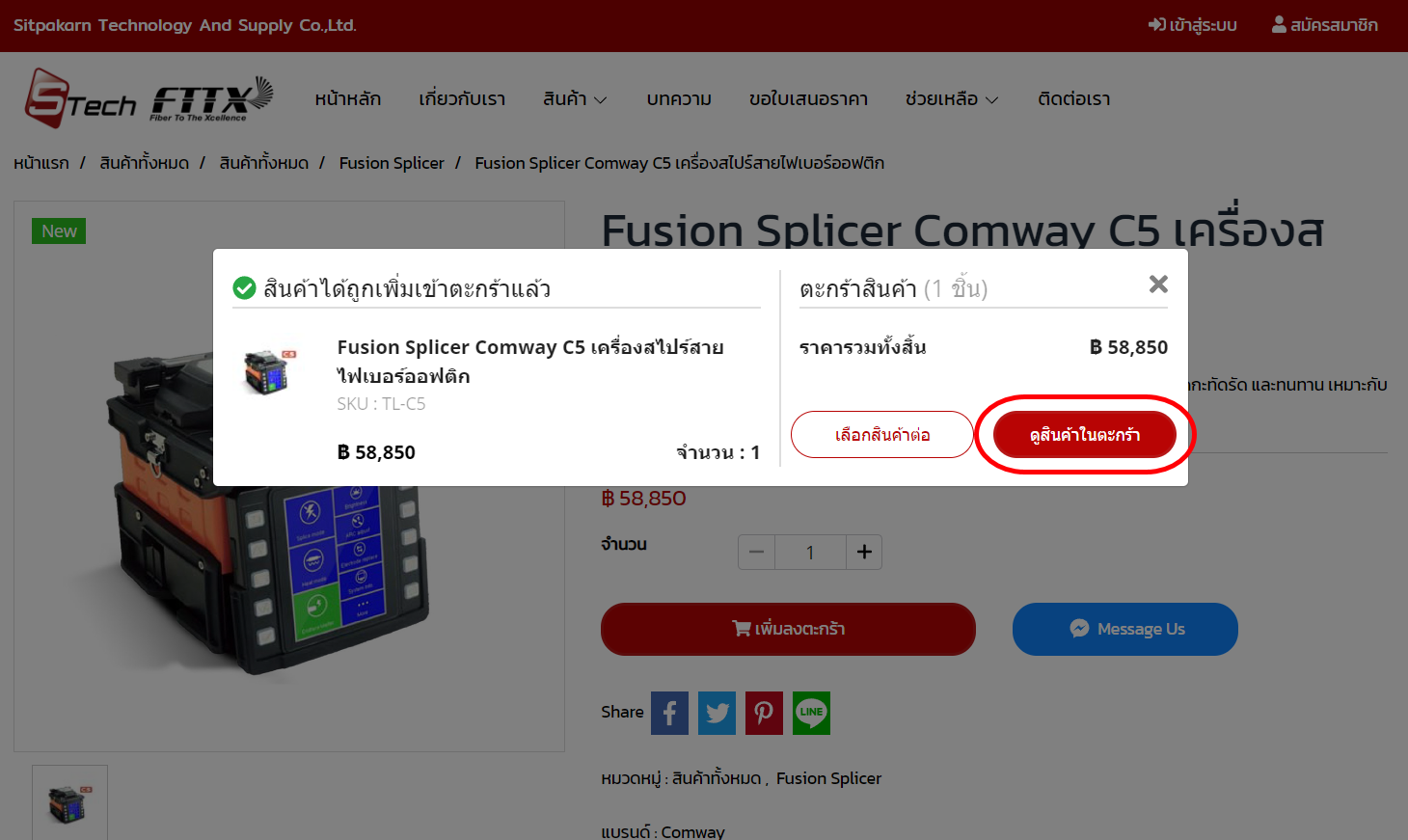 2. หน้าต่างแสดงรายการสินค้าในตะกร้าจะปรากฎขึ้นมา ทำการกดปุ่ม ดูสินค้าในตะกร้า หรือหากต้องการเลือกสินค้าอื่นๆ ให้กดปุ่ม เลือกสินค้าต่อ